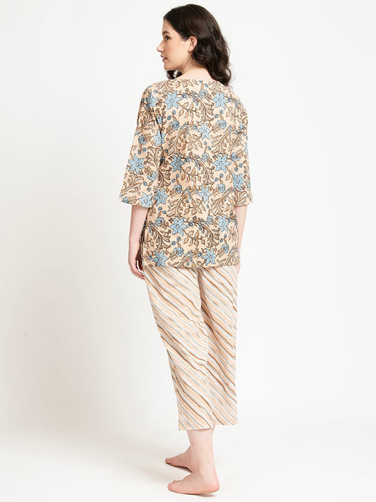 BEIGE AND ICE BLUE JAAL PAJAMA SET