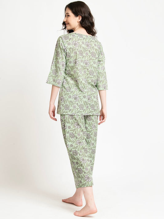 PARROT GREEN COTTON LUREX LONG KURTA AND PANT SET