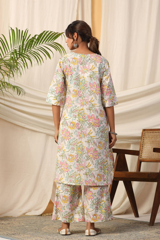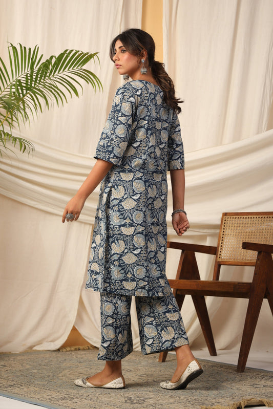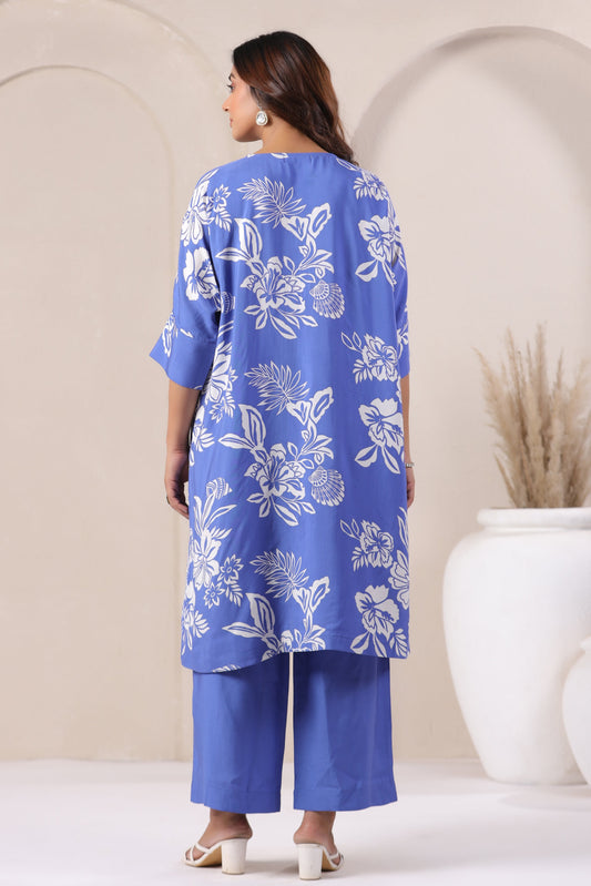 BLUE FLORAL PRINT VISCOSE KURTA SET FOR WOMEN