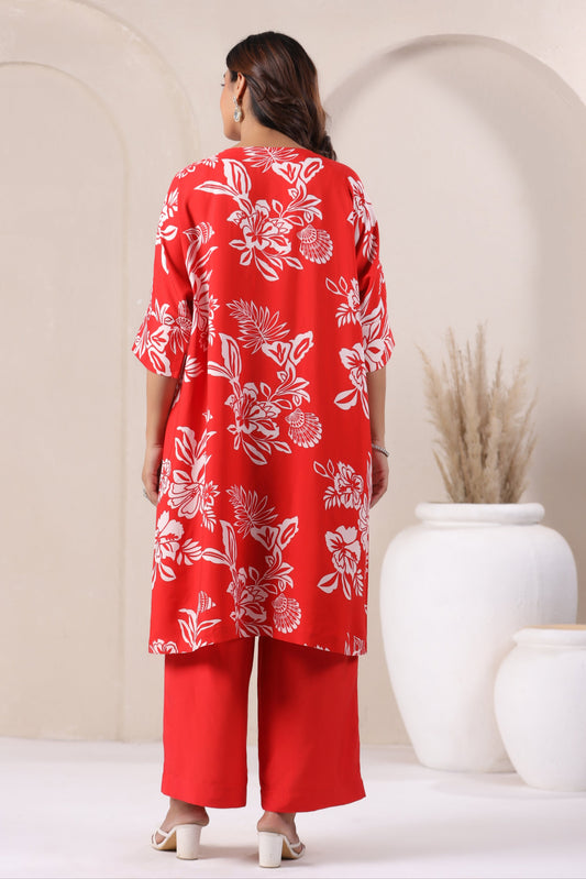 RED FLORAL PRINT VISCOSE KURTA SET FOR WOMEN