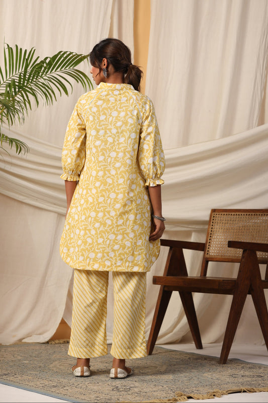 YELLOW SUNSHINE RAGLAN SLEEVE KHADI PRINT KURTA SET