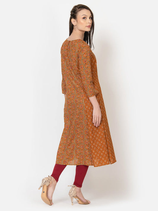 WOMEN'S OCHRE AND MUSTARD A- LINE KALI KURTA