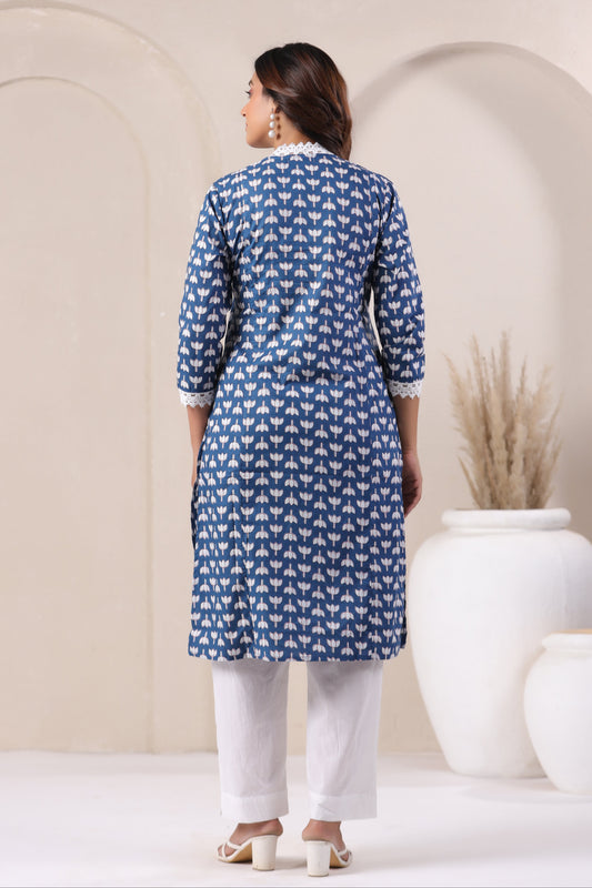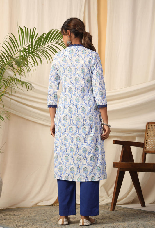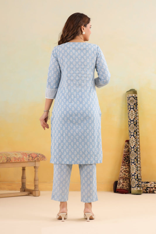 SERENE BLUE FLORAL LACE COTTON SUIT SET