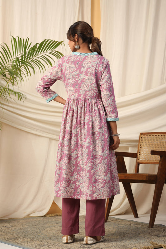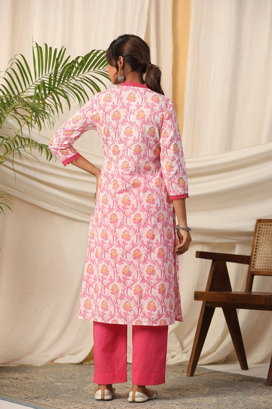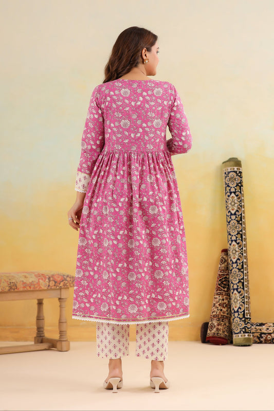 JAAL PRINT PINK & WHITE A-LINE KURTA PANT SET