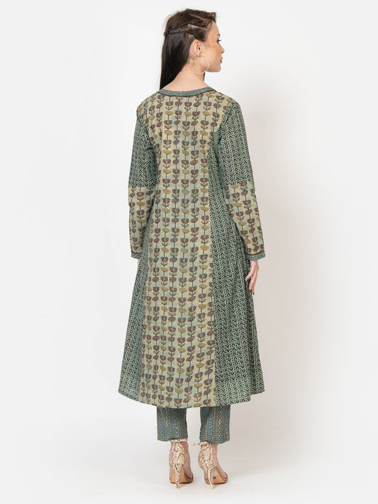 OLIVE GREEN ANGRAKHA KURTA WITH PANTS SET