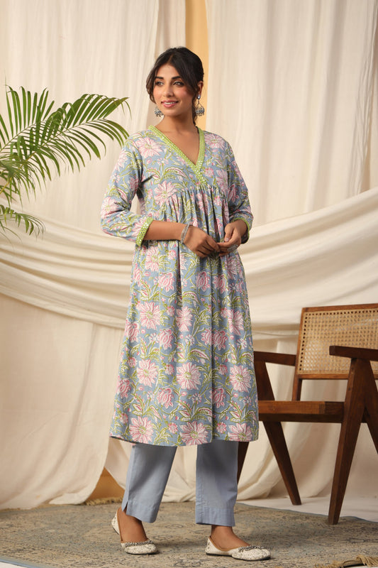 POWDER BLUE FLORAL PRINTED KURTA SET